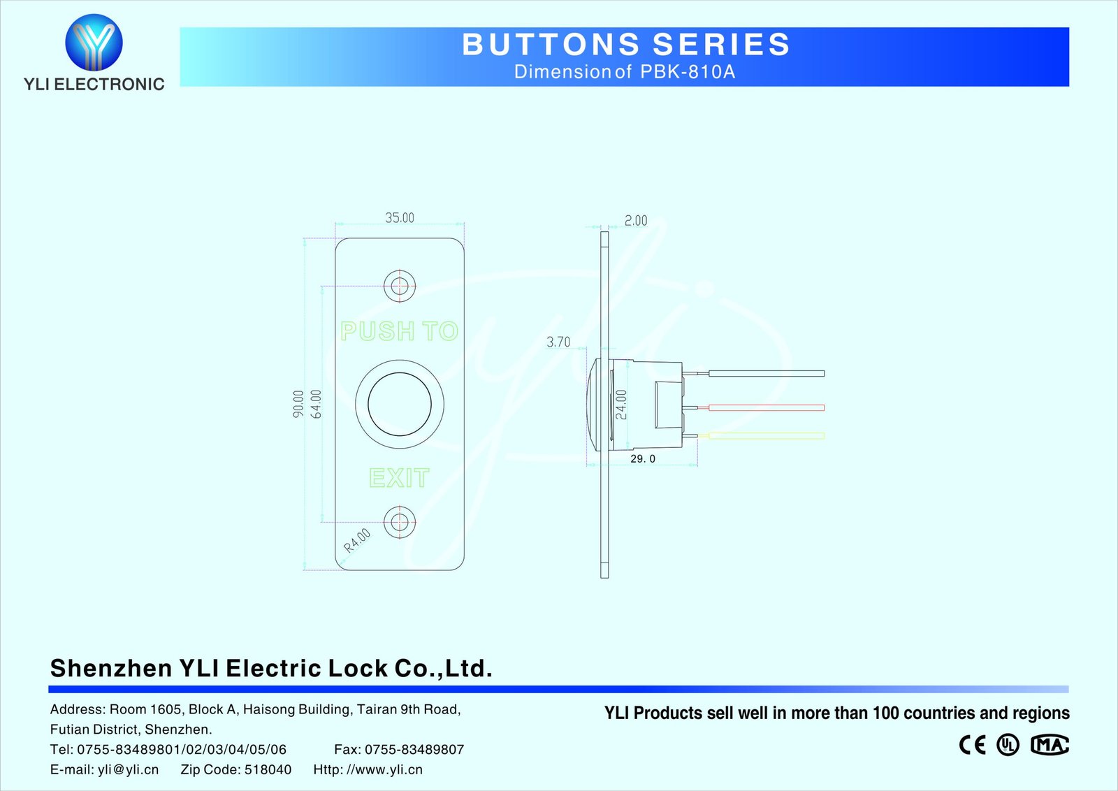 PBK-810A is a stainless steel door release button with size of L90xW35xH29(mm), which is the most common and the most frequently used in the access control systems.