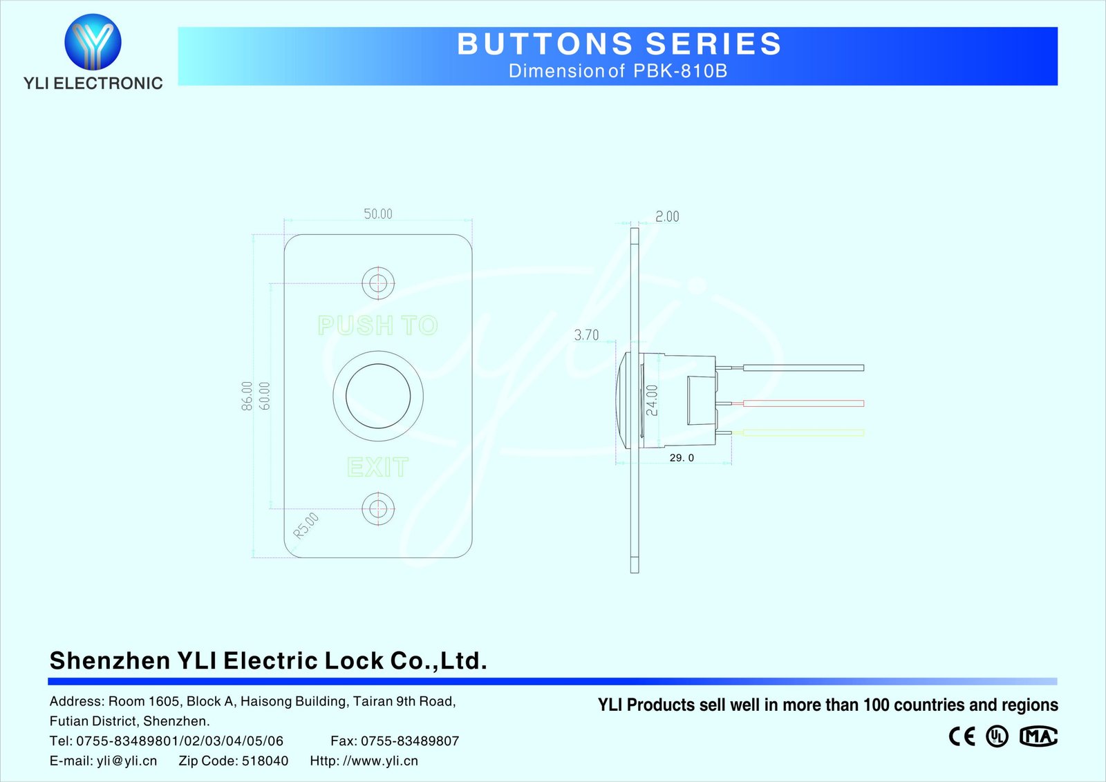 PBK-810B is a stainless steel door release button with size of L86xW50xH29(mm),They are often used in public authorities, banks, large、small and medium-sized enterprises, department stores and residences.