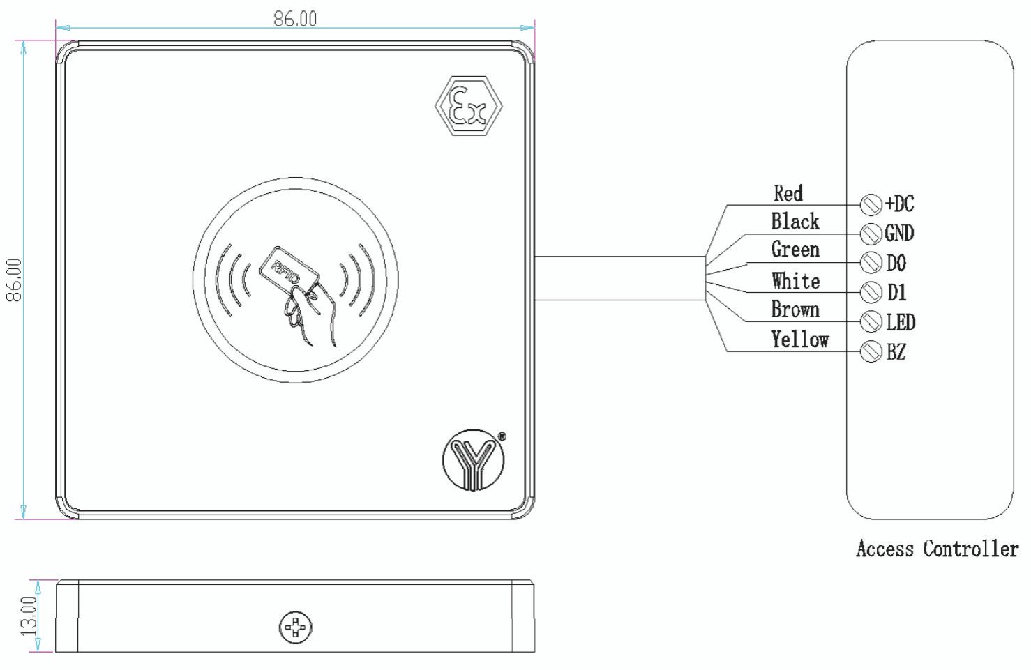 | Card | 1125Khz EM Card/HID Card (YR-168ID-EX) 13.56MHz MF Card(ISO14443A)(YR-168IC-EX) |
