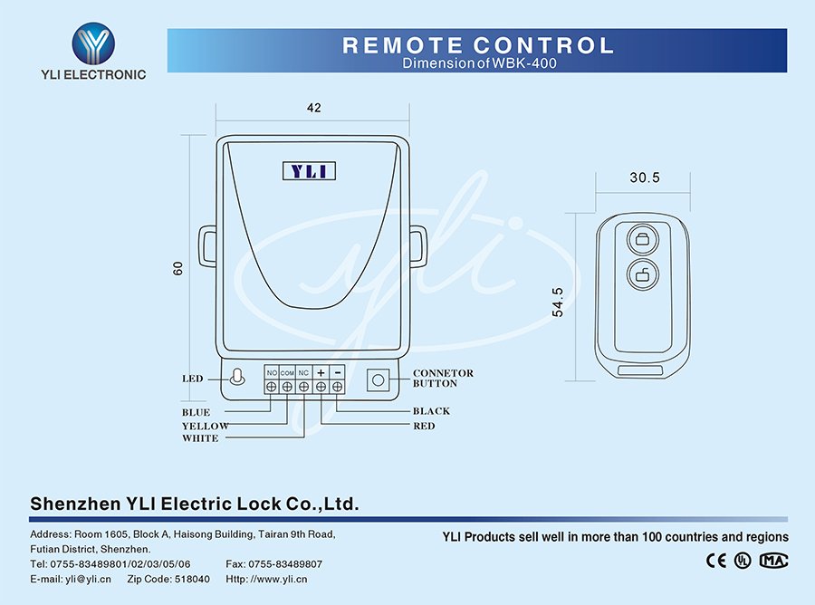 WBK-400-1-12 is the remote control dedicated to Access Control .with metal transmitter for access control .The Effective Transmission Distance is ≤50m(in the open area).It can be Embedded in the wall easily and be controlled sensitively. What’s more, it adopts the roll code chip to prevent falsity.