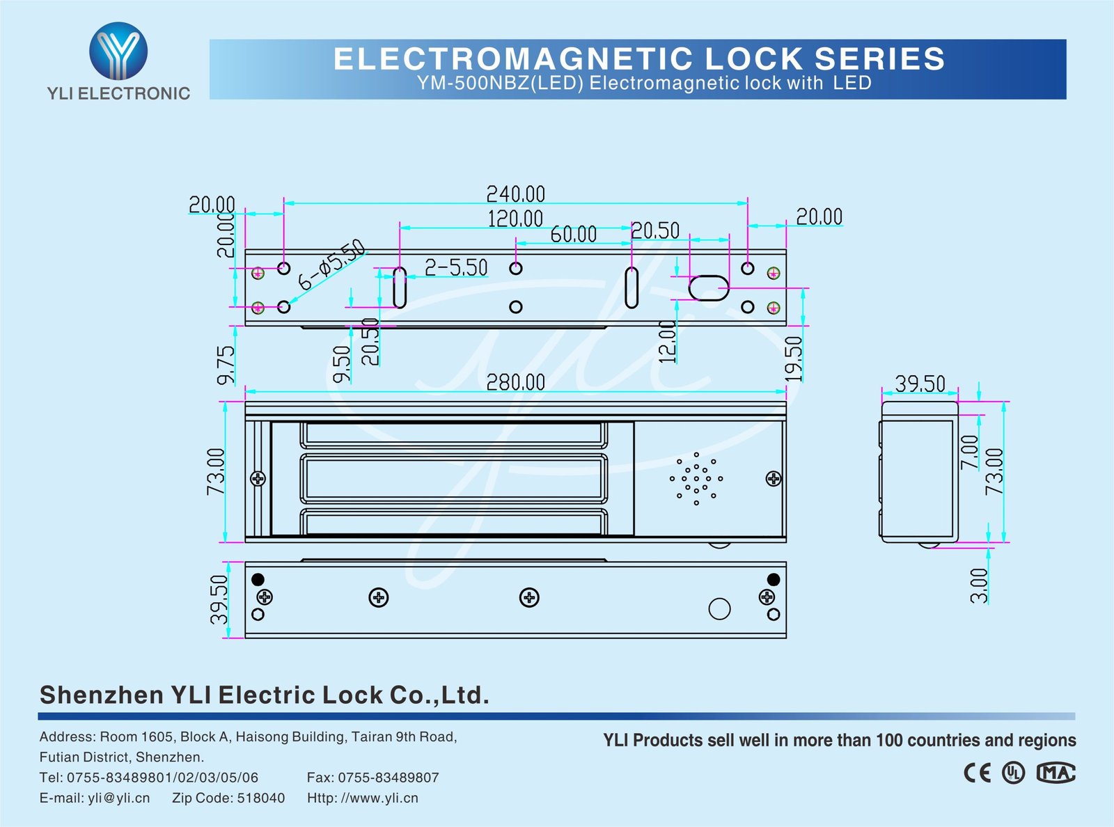 YM-500NBZ(LED) single door electric lock with buzzer .Different types of door can match it .When set up 1-30 as door close time, if the door doesn’t close after 30secs, it will alarm till the door close.